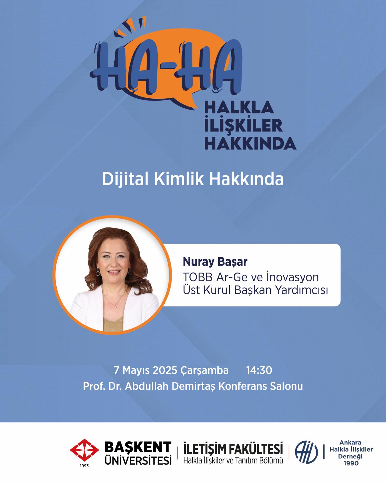 "HA-HA: Halkla İlişkiler Hakkında" etkinliğimizde TOBB AR-GE ve İnovasyon Üst Kurul Başkan Yardımcısı Nuray Başar'ı ağırlayacağız. 28 Nisan 2025 Pazartesi günü saat 14.30'da Prof. Dr. Abdullah Demirtaş Konferans Salonu'nda gerçekleştireceğimiz etkinliğimize herkesi bekliyoruz!